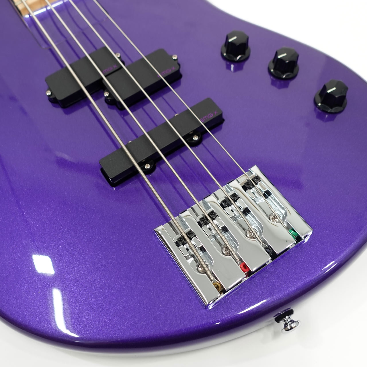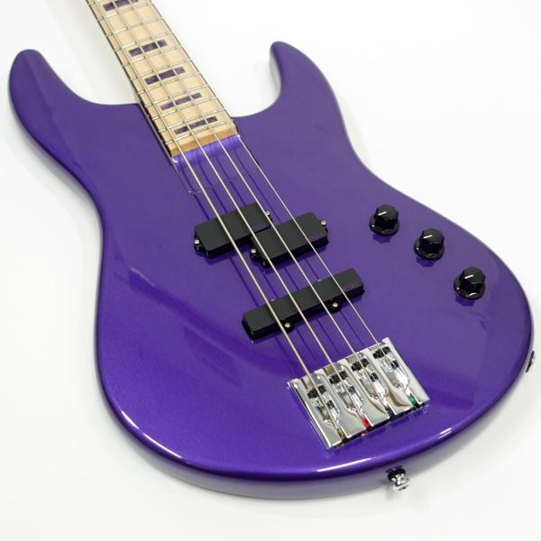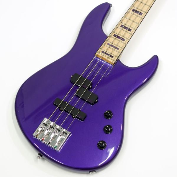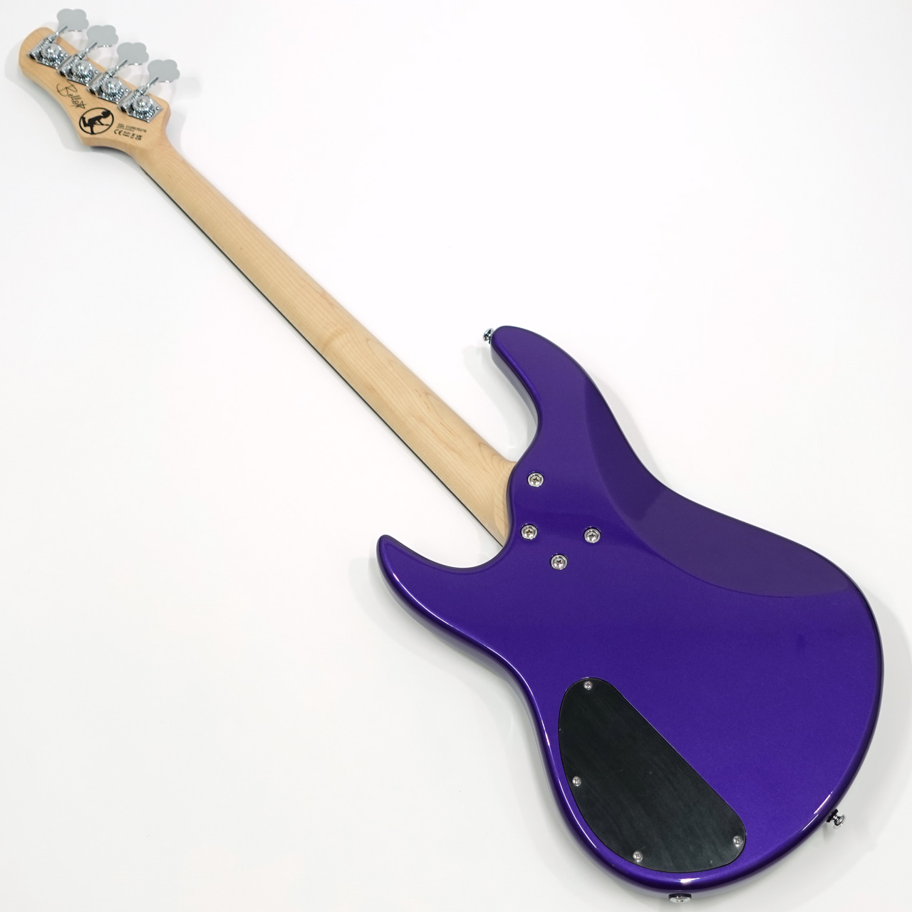 ヘッドストックも同色で統一され、パープルのアクリルブロックインレイが指板に映えます。
