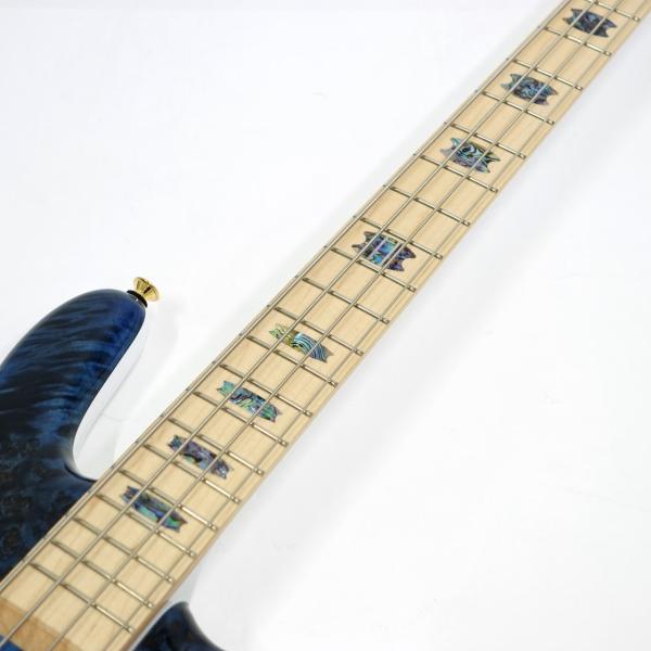 ボディバックはヨーロピアンアッシュを採用。3ピースメイプルのスルーネック、メイプル指板、34インチスケールの24F仕様です。
