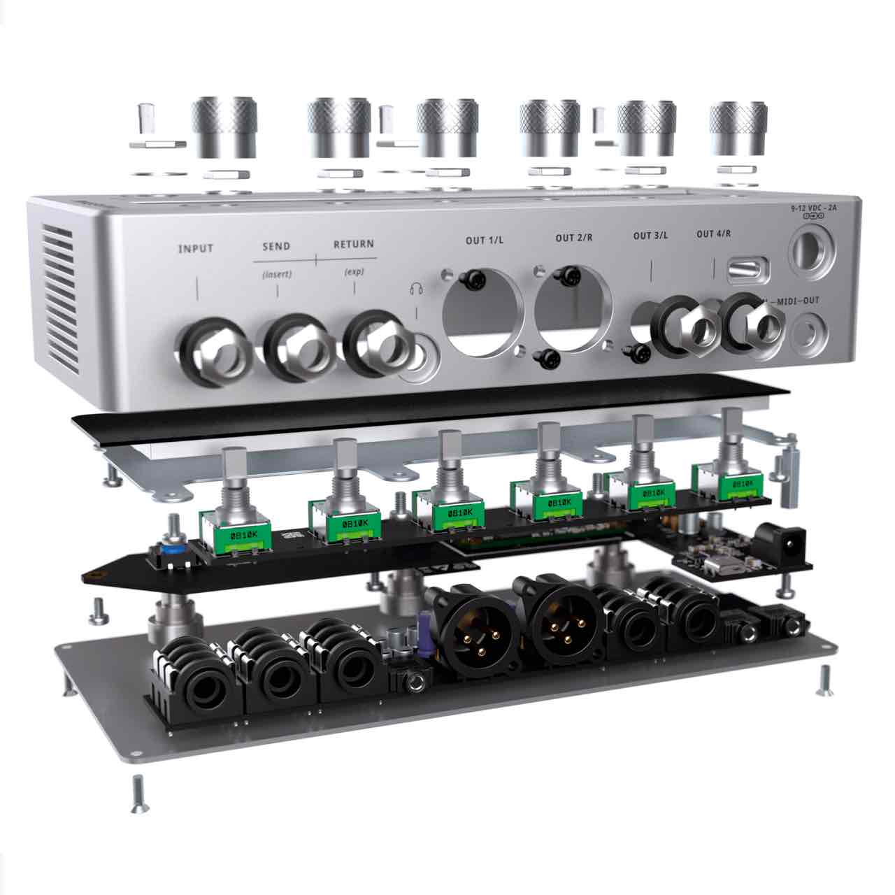 1/4インチのデュアル機能ジャックで、ステレオセンドまたはモノラルインサートとして使用可能です。エフェクトループの構築ができます。 |
