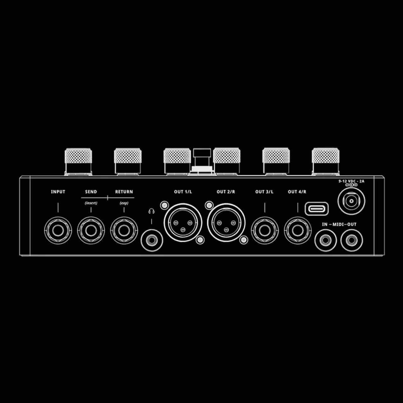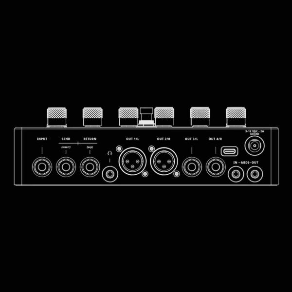 2系統の1/4″ Outputとソフトウェア制御のグランドリフトが内蔵された2系統のXLR Outputがあり、これらの出力はステレオ・エフェクト、スプリット・ウェット/ドライ信号、複数のアンプ接続を可能にし、臨場感あふれるサウンド体験を提供します。 |
