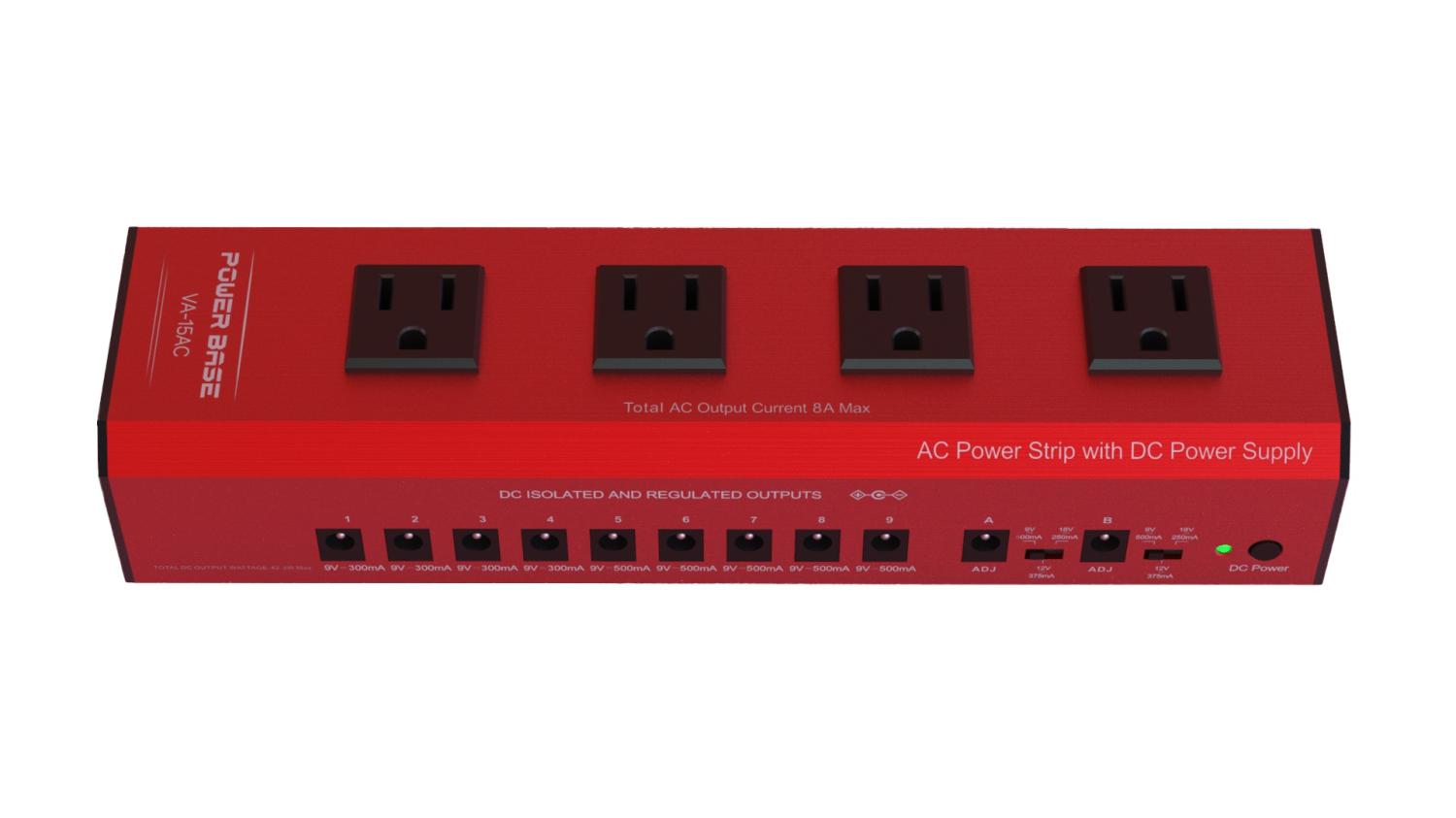 POWER BASE VA-15 ACは、フラグシップ & ベストセラーモデルVA-08 MkIIをベースにしつつも、より多くのエフェクトペダルに電源を供給できる様にアイソレートされた11のDCアウトレットを装備。さらにはAC駆動タイプのエフェクトペダルや他のパワーサプライにも電源供給可能な4つのACアウトレットも装備。