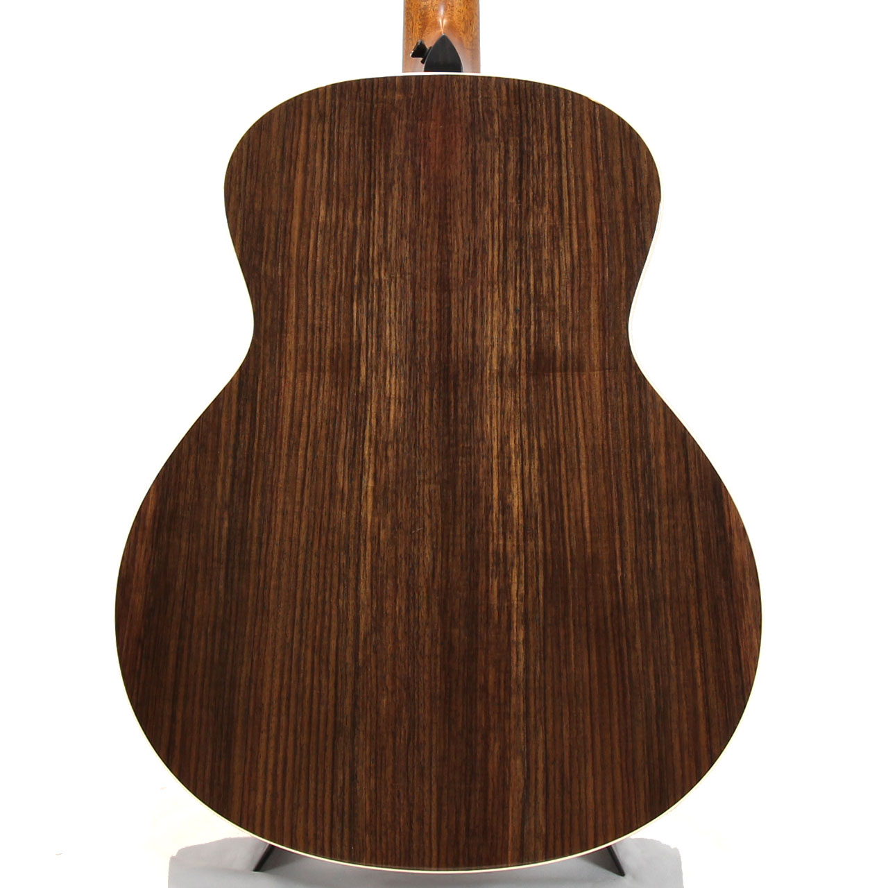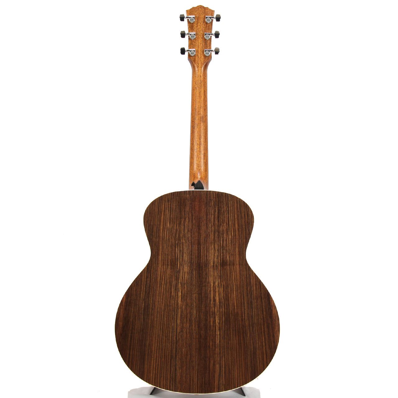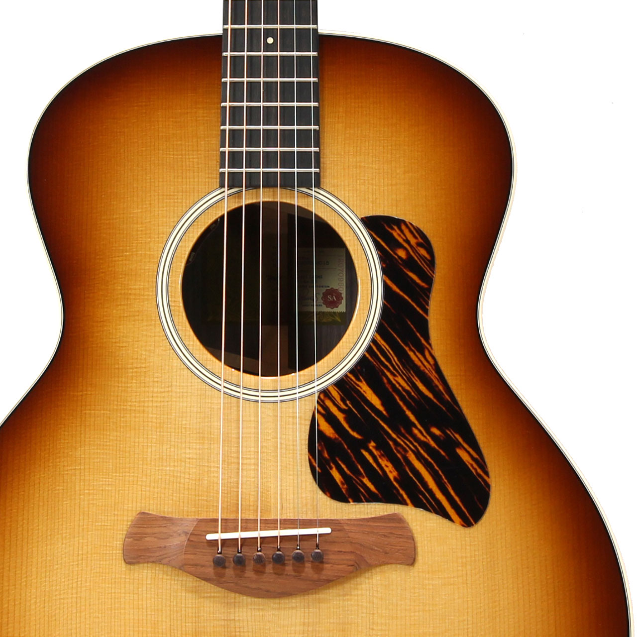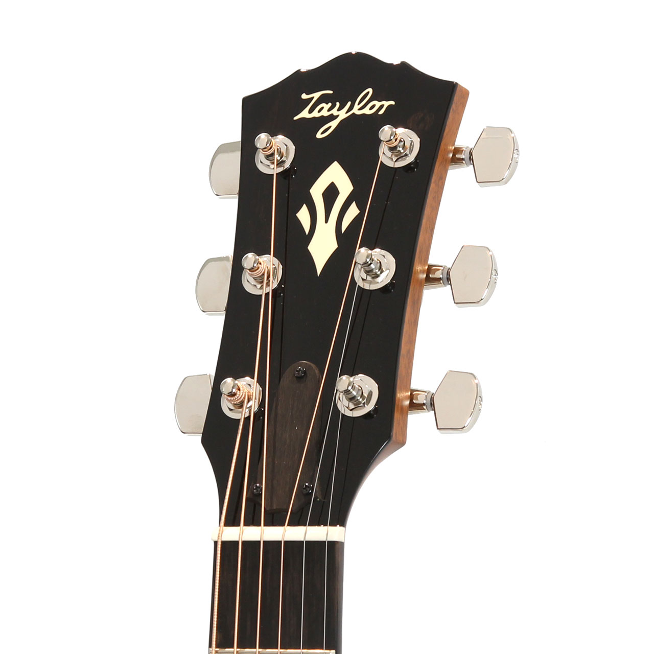 Super Auditoriumシェイプでより密度のある中低音を実現、フラットピッキングを意識しているであろうGold Labelシリーズらしいサウンドコンセプトです。オーソドックスなローズウッドサイド&バックのメリハリの効いた高音域もあり本来のオーディトリアムサイズの汎用性はそのままにやや重心の下がった太いサウンドが持ち味。ブリッジプレートから下へ放射状に広がるファンドV-Classブレーシングにより低音の響きも良く軽やかになり過ぎない絶妙なバランス感。ピックアップにはなんとL.R.Baggs ELEMENT VTCを採用。自社開発のピックアップを採用してきたテイラーでは前代未聞の大抜擢。テイラー社におけるアンダーサドル式ピックアップへの再評価によるものでNAMM 2026でも発表された新ピックアップへの布石ともとれる大胆な仕様と言えます。