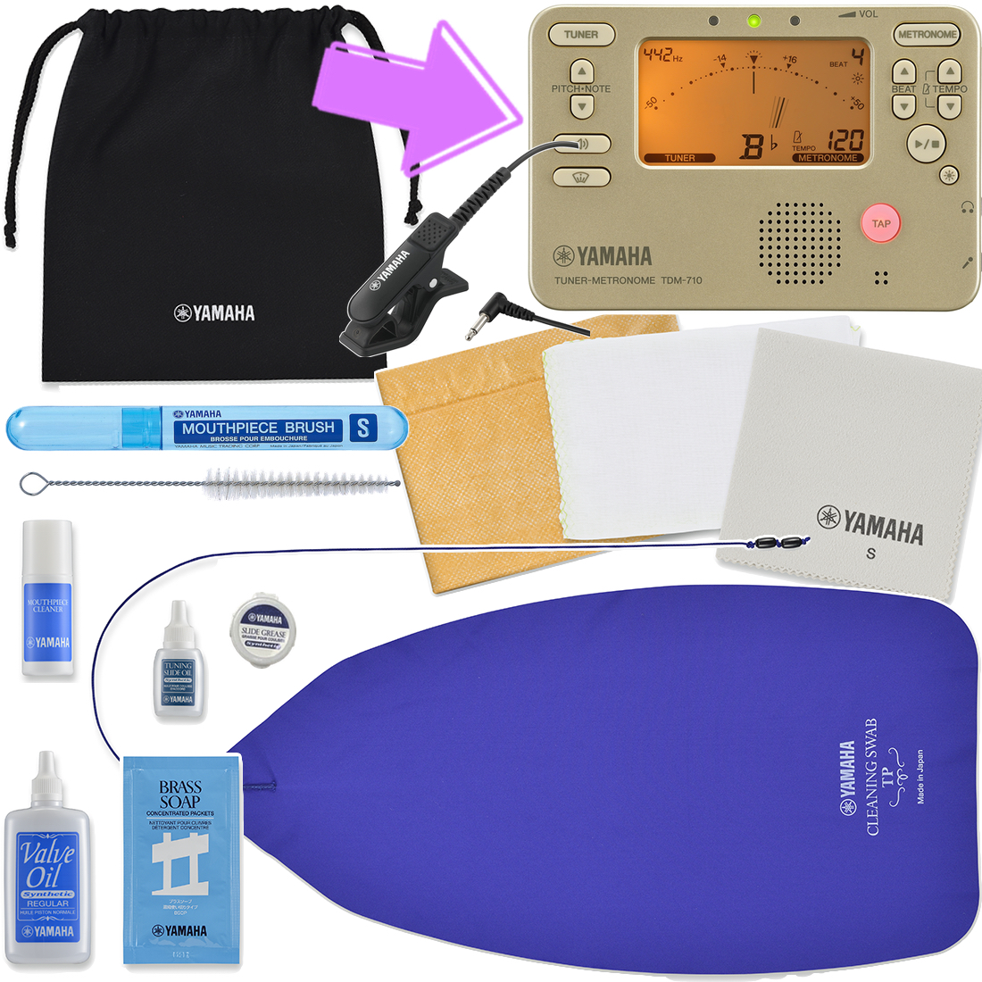 YAMAHA ヤマハ トランペット お手入れセット KOSTP6 チューナーメトロノーム TDM-710GL チューナーマイク TM-40BK Trumpet セット F 北海道 沖縄 離島不可