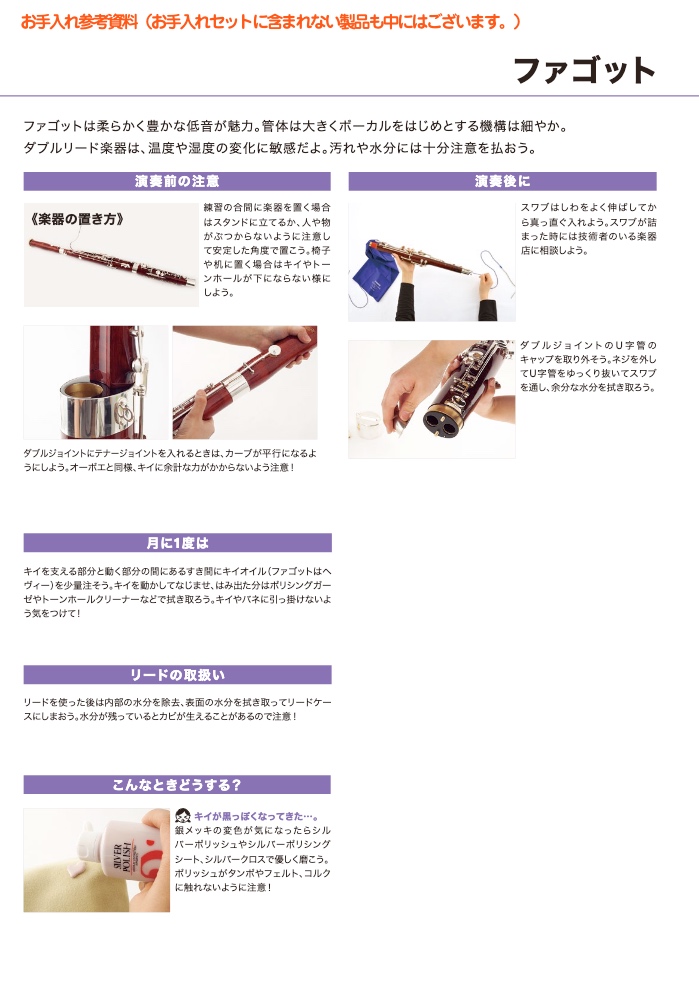 ・キイオイルヘビー(8ml)...月に一度はキイの軸受部に少量差し、余分なオイルや管体についたオイルはきちんと拭きましょう。