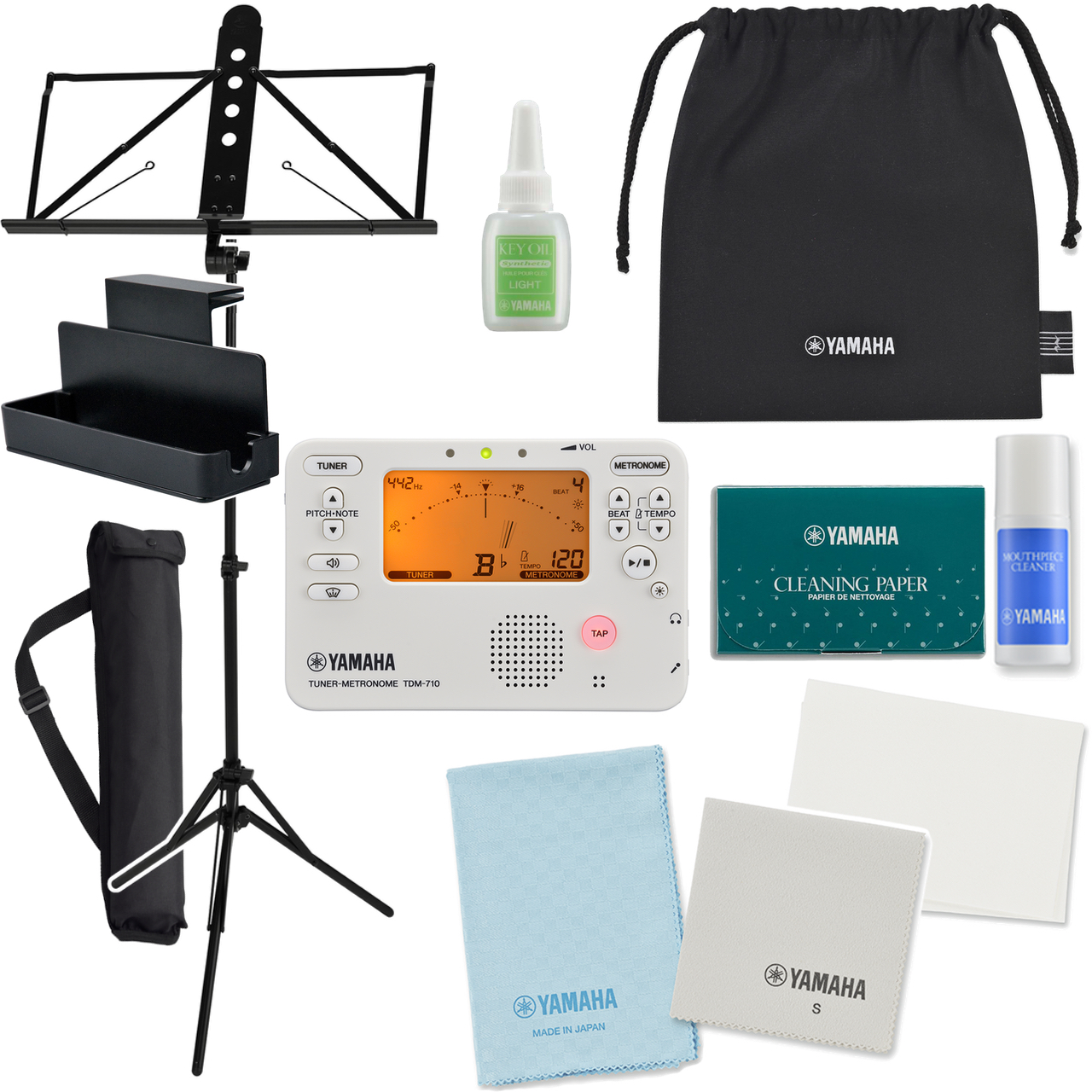 YAMAHA ヤマハ KOSFL6 フルート お手入れセット チューナー TDM-710IV アイボリー アルミ MS-260AL 譜面台ラック セットD 以下は対応不可 北海道 沖縄 離島 代引き