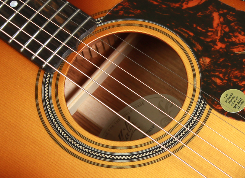 ピックアップシステムは「AP5 PRO」。限りなくクリアで透明感のあるマイクサウンドと力強いピエゾの存在感は演奏場所を問わずナチュラルなアコースティックサウンドを出力できます。