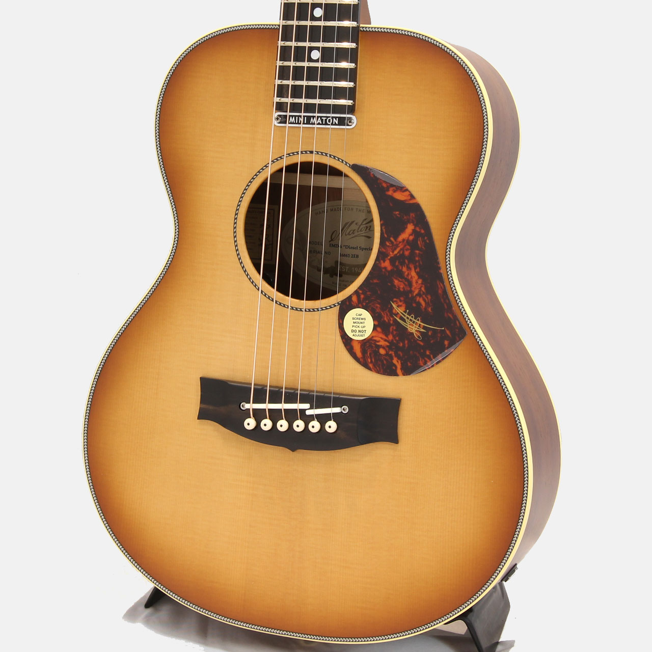 こちらは”AA”グレードのシトカスプルーストップにブラックウッドのバック&サイド材を組み合わせたミニメイトンの中でも1番人気のDiesel Special。ピックアップシステムは最高峰のAP5Proが搭載されております。