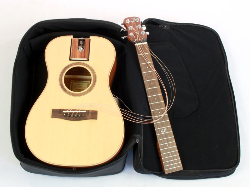 こちらのギターはOverheadシリーズと名付けられており、その名の通り飛行機や新幹線などの頭上棚に収納可能サイズの専用リュックに入れてどこへでも持ち運びが可能なモデルとなります。