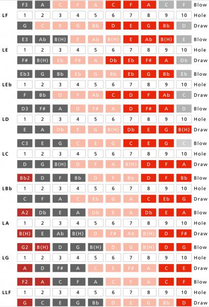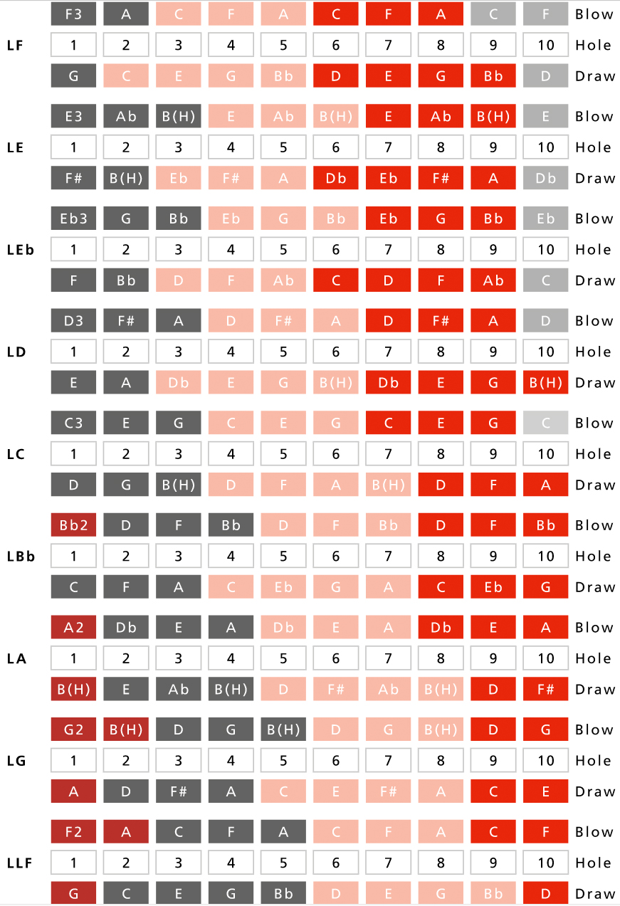 ■調子(キー)ラインナップ:Low-F, Low-E, Low-Eb, Low-D, Low-C, Low-Bb, Low-A, Low-G, LowLow-F ※細かい仕様が画像と異なる場合がございます。 ハーモニカの豆知識