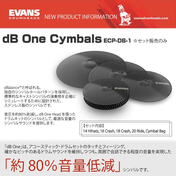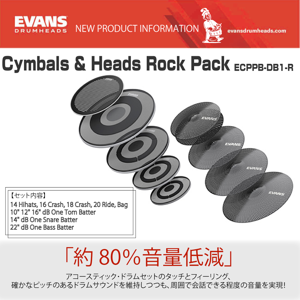 EVANS エバンス dB One Cymbals & Heads Rock Pack 約80% 音量低減 ECPPB-DB1-R