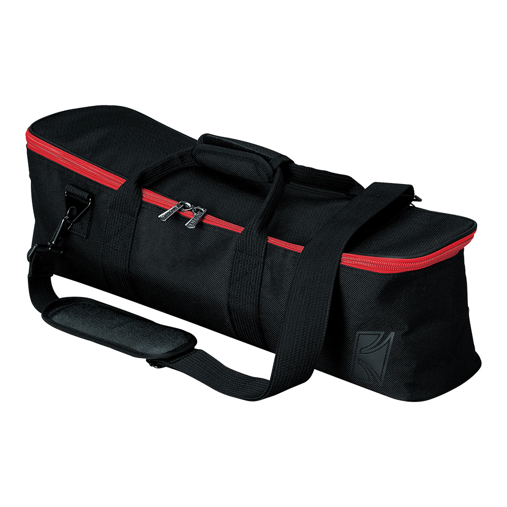 フラットベースタイプのスタンドなど、コンパクトで軽量なハードウェアを運ぶのに最適なバッグ。取り回しのよいサイズながら、運搬時のトラブルから機材を守るクッション性も備えています。またハンドルとストラップが備え付けられていて、持ち運びも容易。