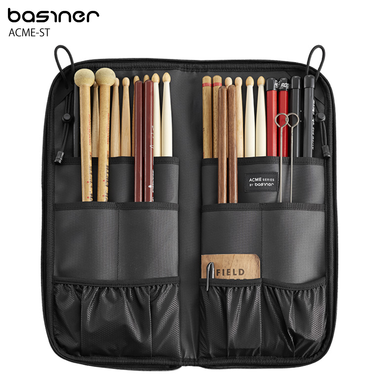 【 ACME -STICK BAG 】ドラマーが望む理想のデザイン、機能を備えた ACME ドラムスティックバッグは、約12ペアのスティックやマレットが収納可能。整頓し易いマルチコンパーメントタイプの内装、アクセサリーをまとめて収納し、カジュアルに持ち運びできます。