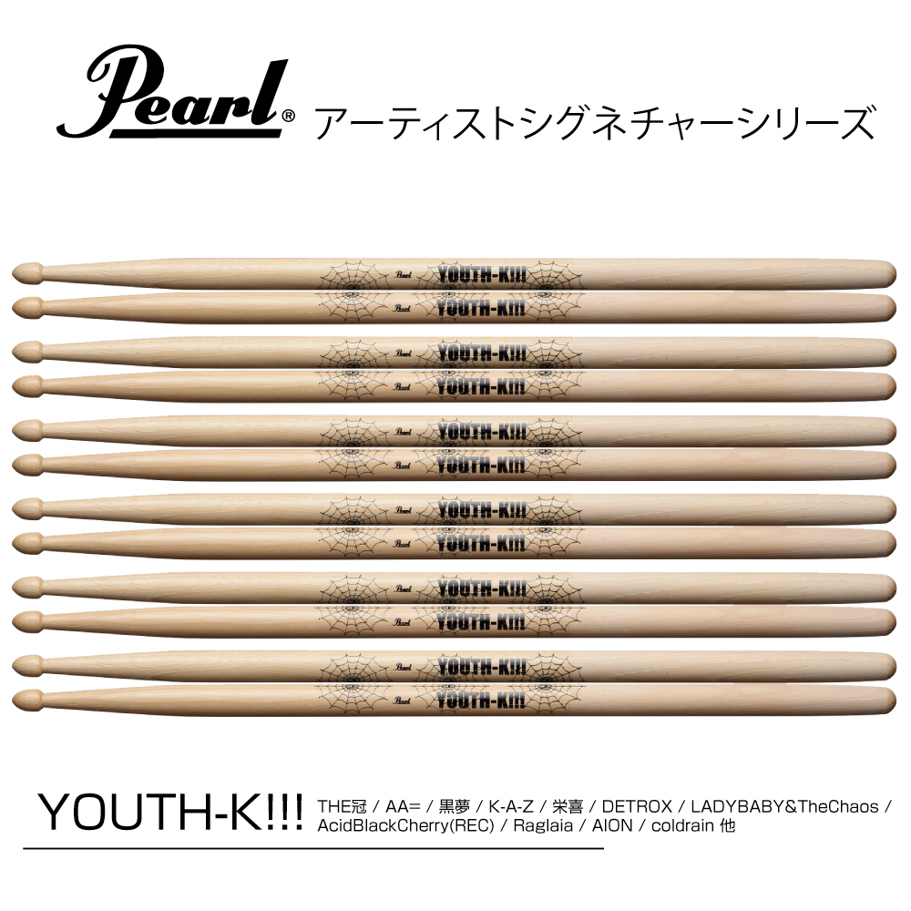 Pearl パール 178H [1BOX/6ペア] DRUM STICKS YOUTH-K!!!モデルアーティストシグネチャーシリーズ・YOUTH-K!!!モデル