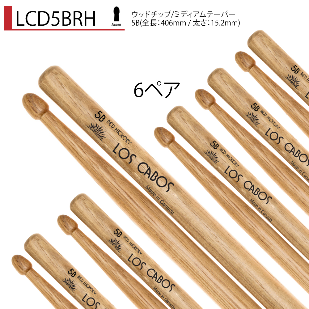 Los Cabos 6ペアセット LCD5BRH レッドヒッコリーヒッコリーの中心部の色の濃い部分から作られたレッドヒッコリースティック!