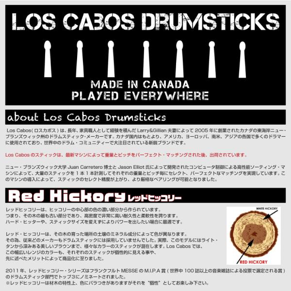Los Cabos(ロスカボス)は、長年、家具職人として経験を積んだLarry&Gillian夫妻によって2005年に創業されたカナダの東海岸ニュー・ブランズウィック州のドラムスティック・メーカーです。 カナダ国内はもとより、アメリカ、ヨーロッパ、南米、アジアの各国で多くのドラマーに使用されており、 世界中のドラム・コミュニティーで大注目されている新鋭ブランドです。