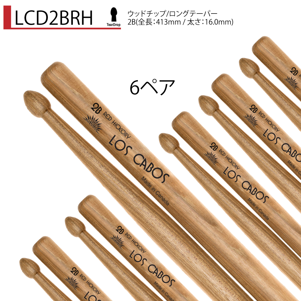 Los Cabos 6ペアセット LCD2BRH レッドヒッコリーヒッコリーの中心部の色の濃い部分から作られたレッドヒッコリースティック!