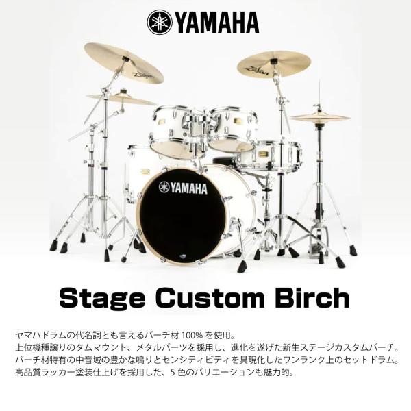 ヤマハドラムの代名詞とも言えるバーチ材100%を使用し、上位機種譲りの機構を施しワンランク上のセットドラムとして生まれ変わったステージカスタムバーチ。バーチ材特有の中音域の豊かな響きを実現。ヤマハドラムの代名詞とも言えるバーチ材100%を使用。上位機種譲りのタムマウント、メタルパーツを採用し、進化を遂げた新生ステージカスタムバーチ。バーチ材特有の中音域の豊かな鳴りとセンシティビティを具現化したワンランク上のセットドラム。