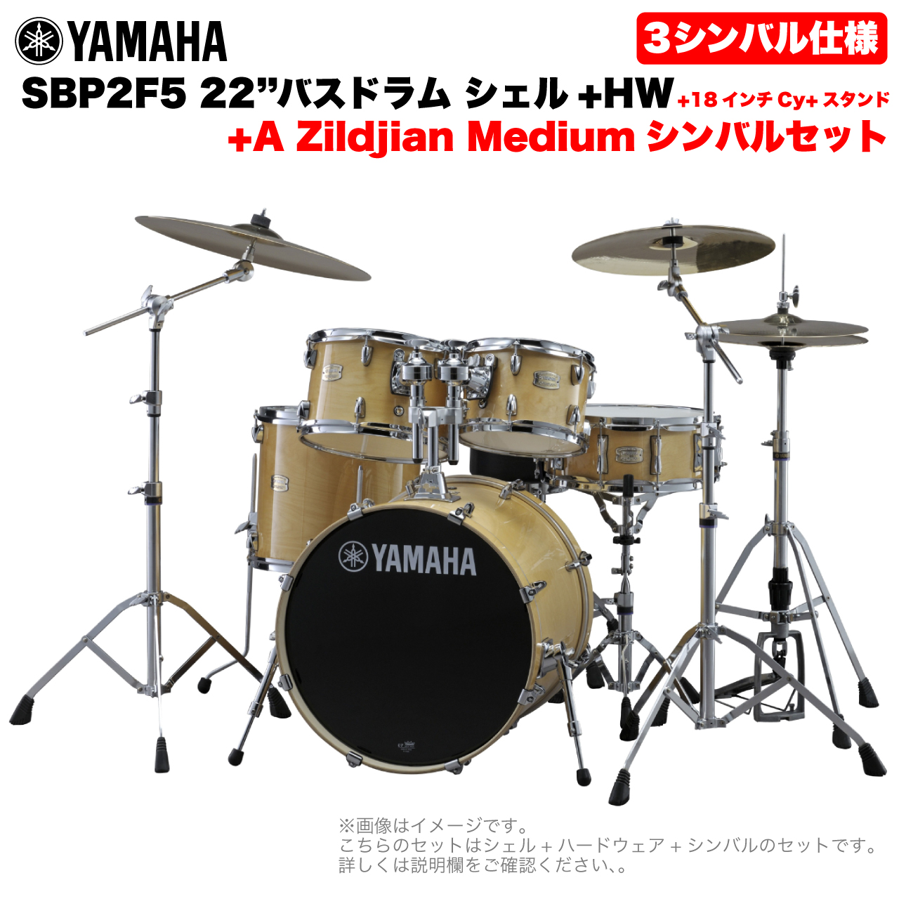 YAMAHA ヤマハ Stage Custom Birch SBP2F5AZM18 #NW 22"バスドラム 標準サイズ  3シンバルフルセット(Aシリーズシンバル)