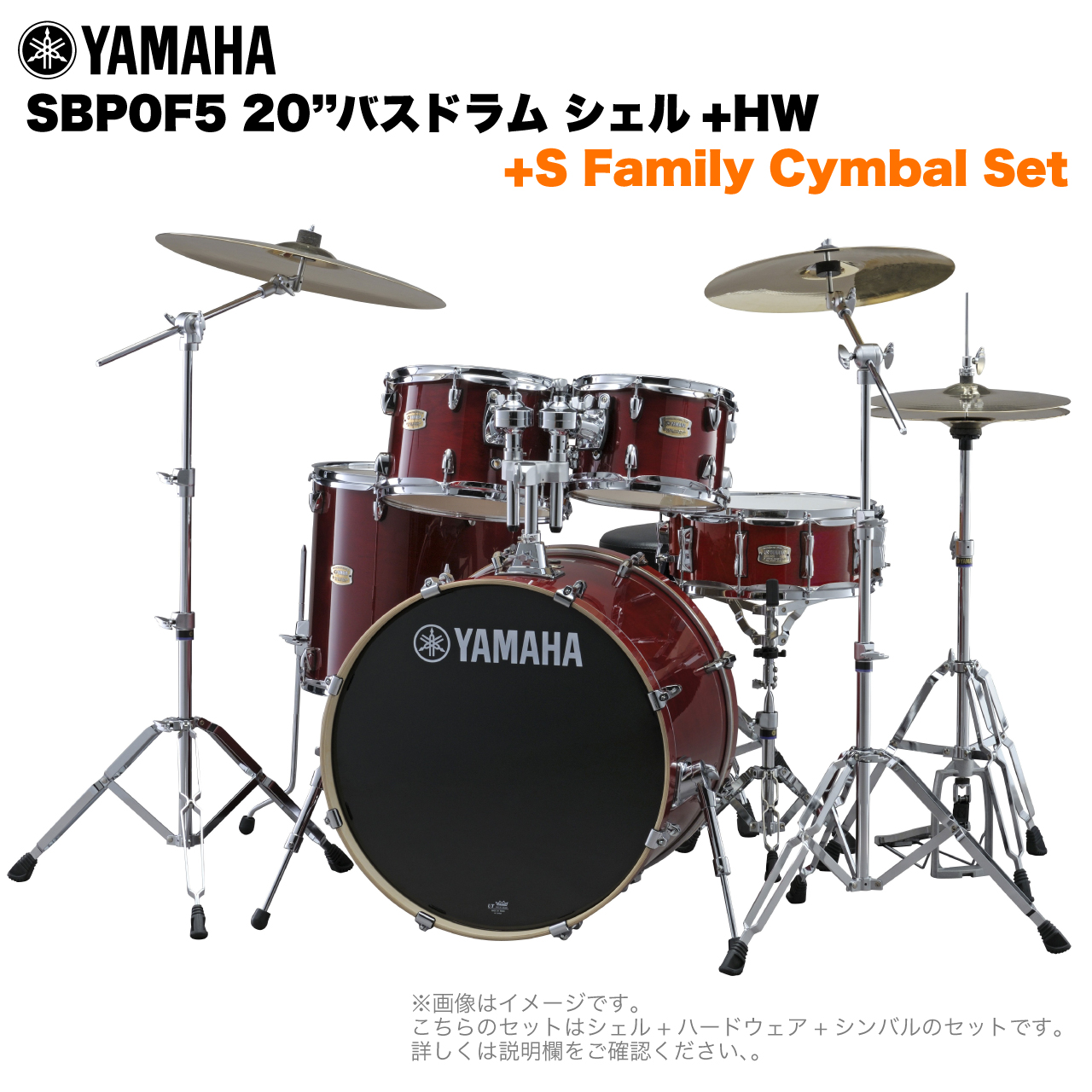 YAMAHA ヤマハ Stage Custom Birch SBP0F5S #CR 20"バスドラム 標準サイズ 2シンバルフルセット(Sシリーズシンバル)ワンランク上のセットドラムとして生まれ変わったステージカスタムバーチ。