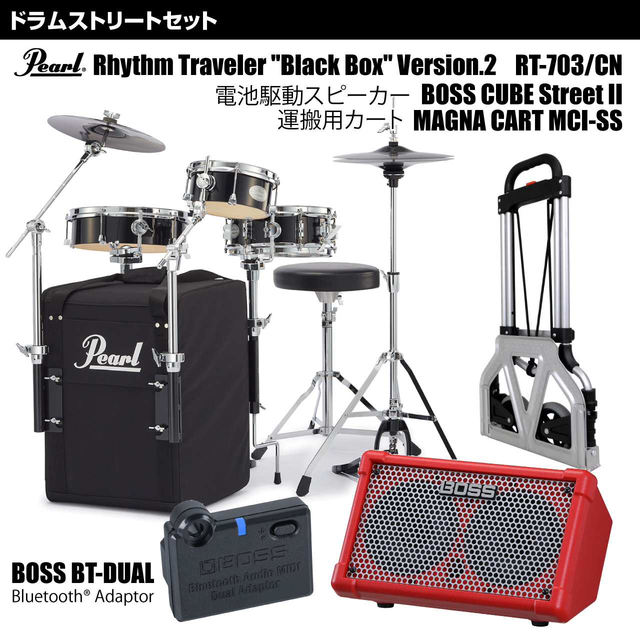 Pearl パール RT-703/CN 移動用カート 電池駆動スピーカー CUBE STREET II RD Bluetooth接続 BT-DUAL ドラムセット ストリート 持ち運び