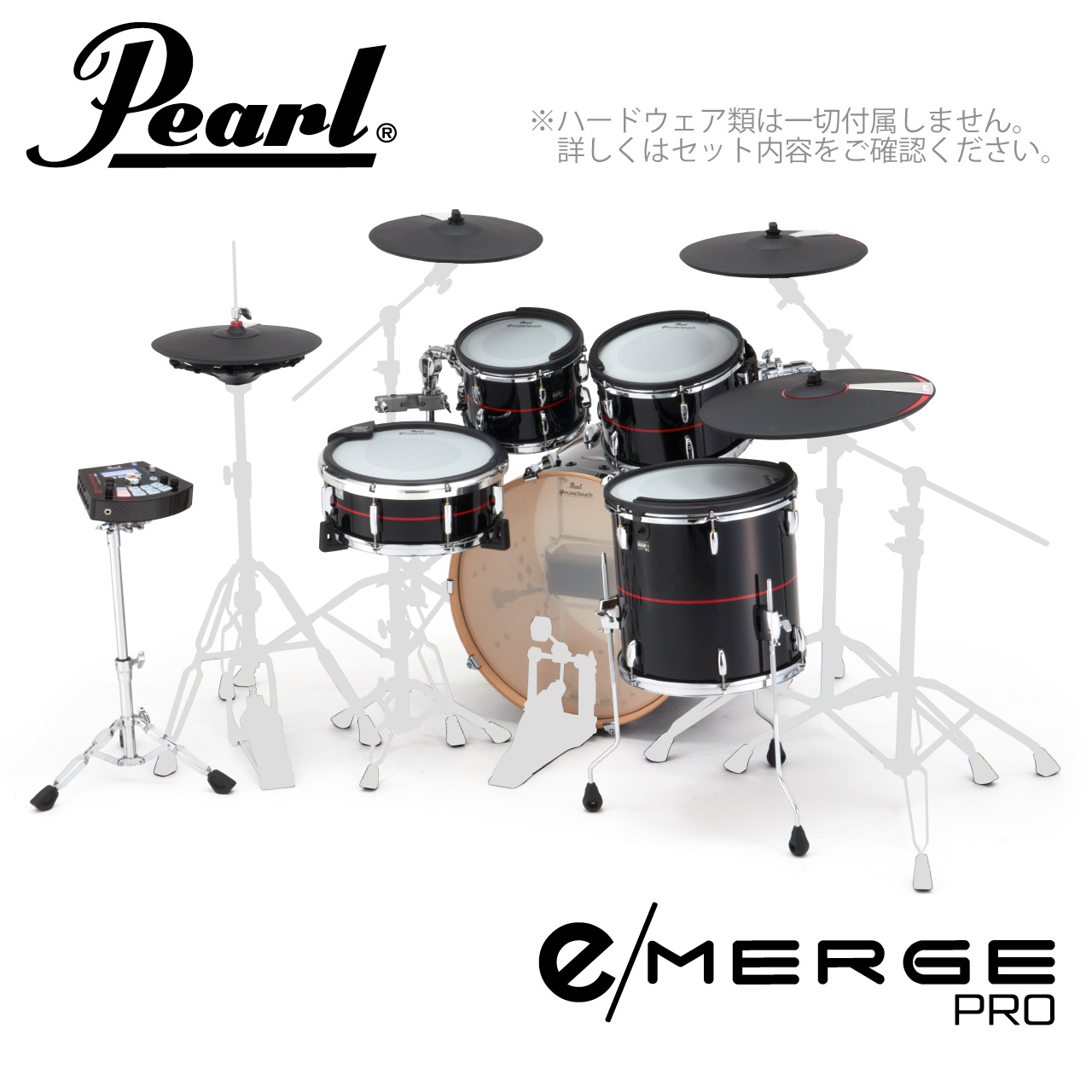 75年以上の歴史を持つPearlのアコースティック・ドラム製造の卓越した技術とKORGの先進的な電子技術を完璧に融合したe/MERGEは、本物の木材に高級感あふれるラッカー仕上げを施したタム、キック、スネアによって、リアルなアコースティック・ドラムのルックスに進化しました。従来のWAVEトリガー・テクノロジーによる音色のリアルさ、高速レスポンス、広いダイナミクスレンジや、PUREtouchパッド・システムの快適な打感はそのままに、それぞれのサイズ感を限りなくアコースティック・ドラムに近づけることで演奏性を遜色ないレベルにまで押し上げ、あらゆるプレイヤーのパフォーマンスを底上げします。