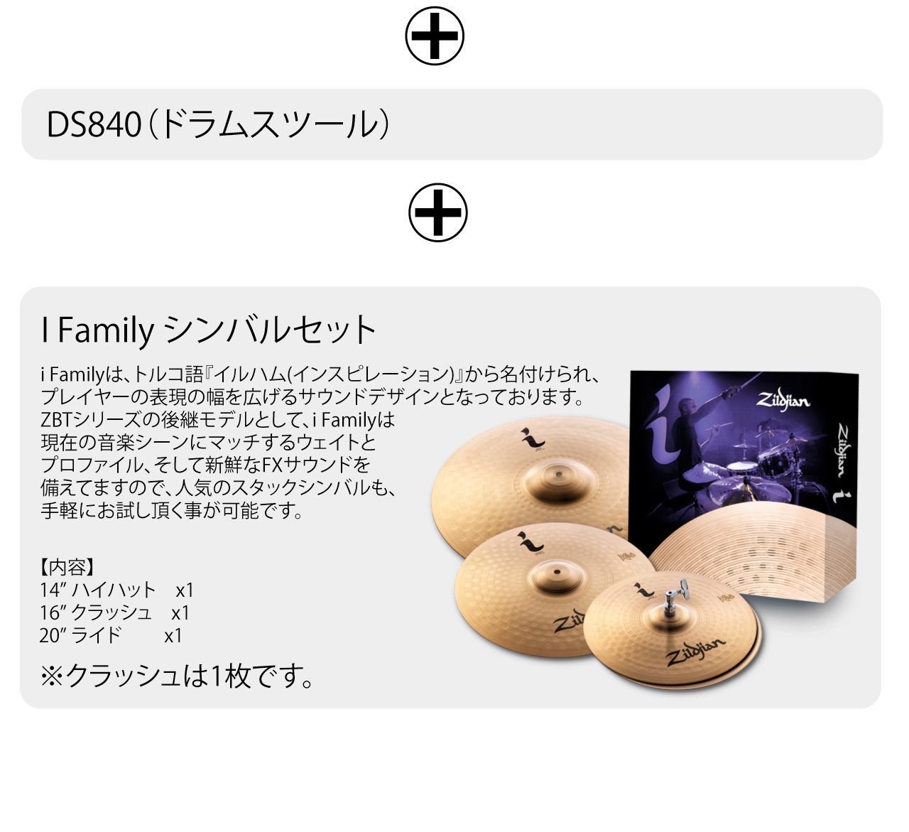 Iシリーズシンバルセットです!(2シンバル仕様/クラッシュとライドが1枚づつです。)