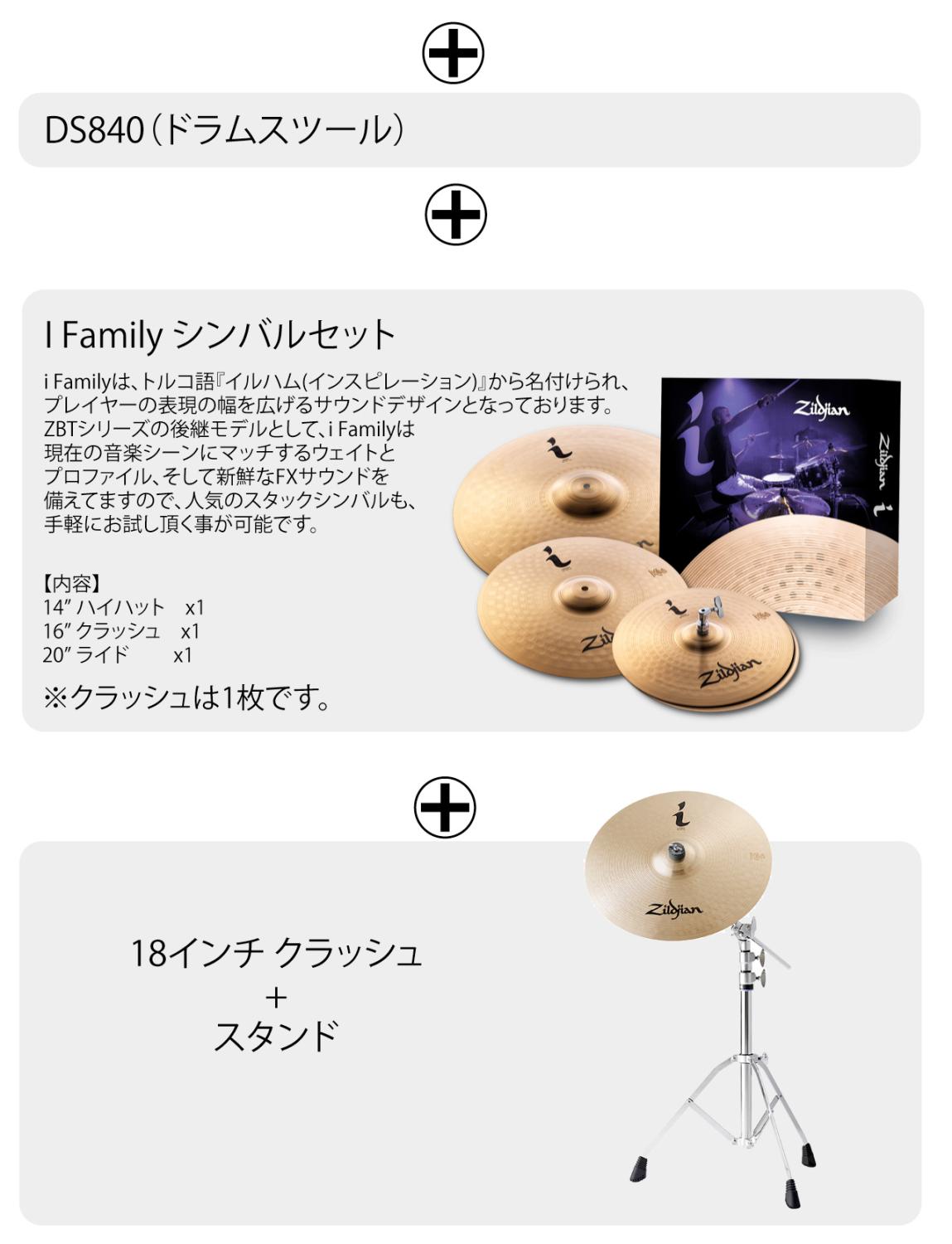 ●シンバル Zildjian iシリーズ 18"クラッシュシンバル/スタンドセット
