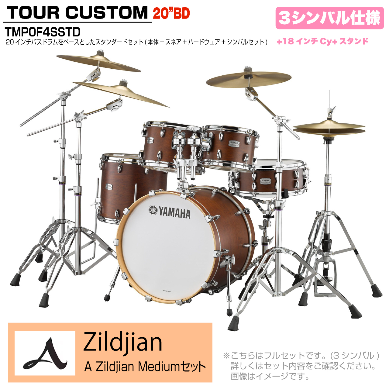 YAMAHA ヤマハ Tour Custom TMP0F4SSTD CHS チョコレートサテン スタンダードセット A Zildjian シリーズ 3シンバル