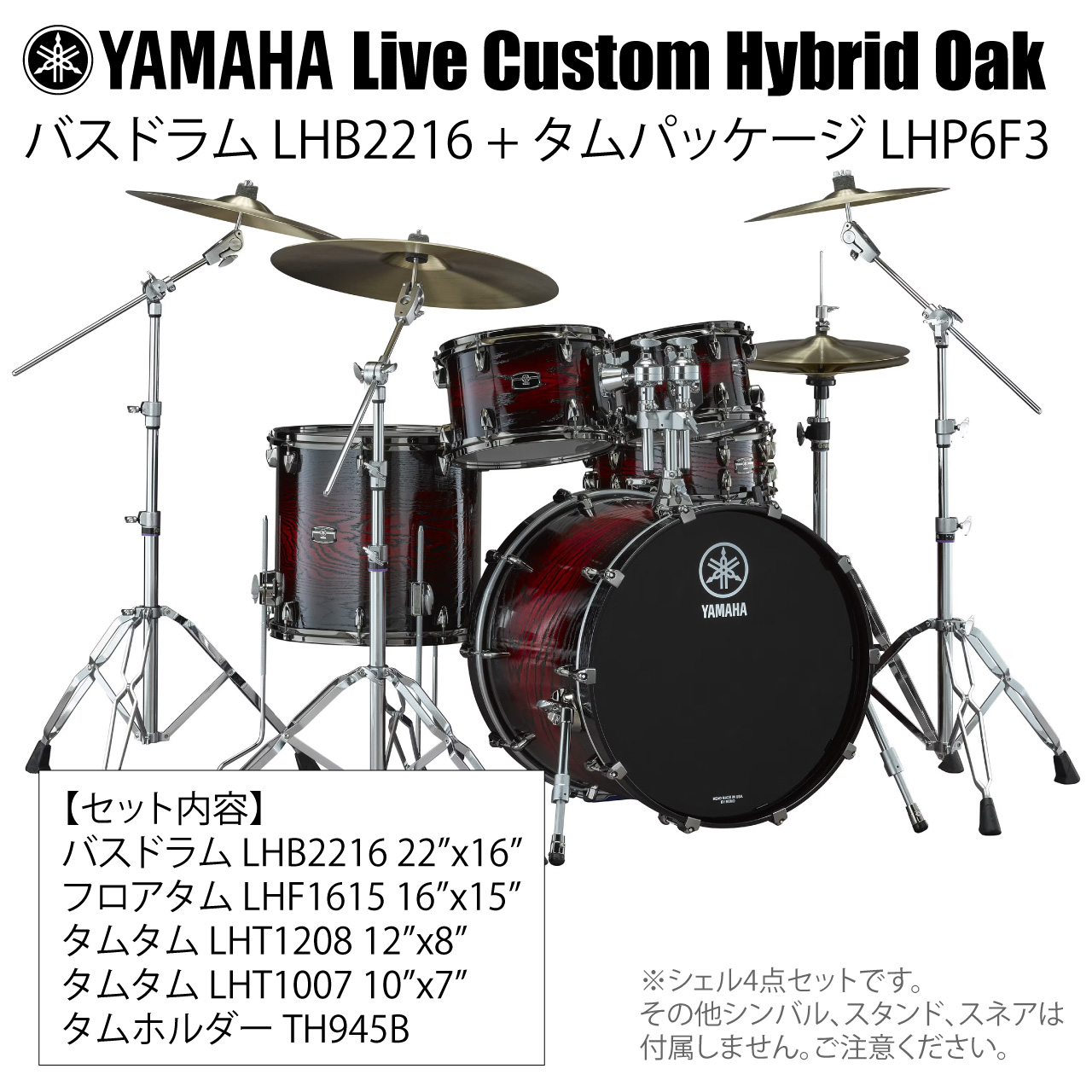 YAMAHA ヤマハ Live Custom Hybrid Oak LHB2216 + LHP6F3 UMS シェル4点セット低音域に切れの良いアタック感とパワーを増強!シェル4点セット
