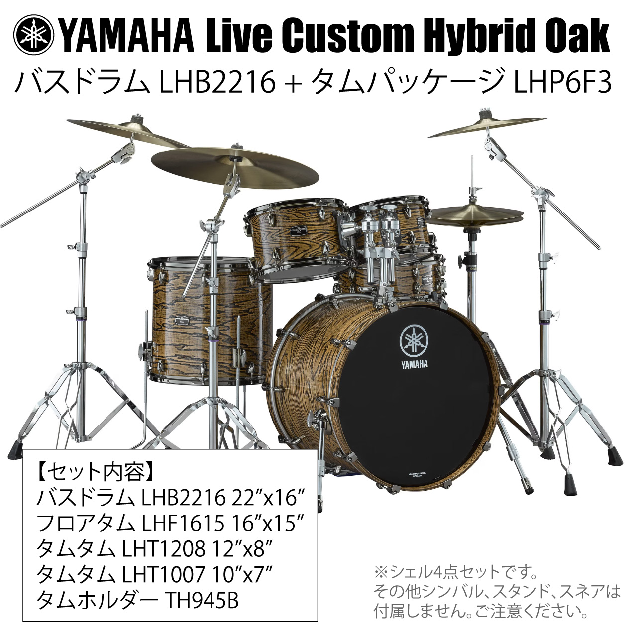 YAMAHA ヤマハ Live Custom Hybrid Oak LHB2216 + LHP6F3 UNT シェル4点セット