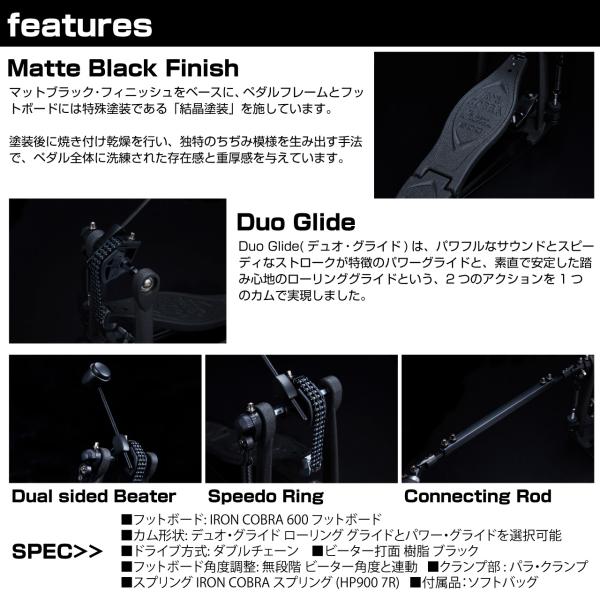 1つのペダルで音楽やシチュエーションに合わせて異なるペダル・アクションを楽しめるデュオ・グライド ツインペダル Iron Cobra 600 Series Duo Glide
