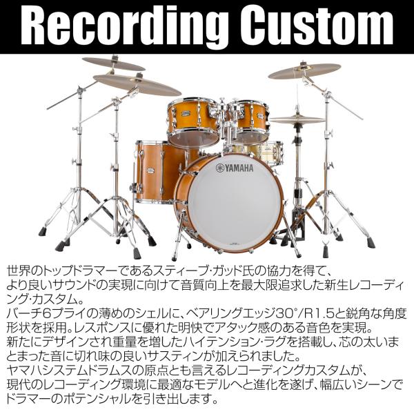 YAMAHA ヤマハ Recording Custom RBB2216 RW 22"x16" バスドラム単品世界のトップドラマーであるスティーブ・ガッド氏の協力を得て、より良いサウンドの実現に向けて音質向上を最大限追求した新生レコーディング・カスタム。