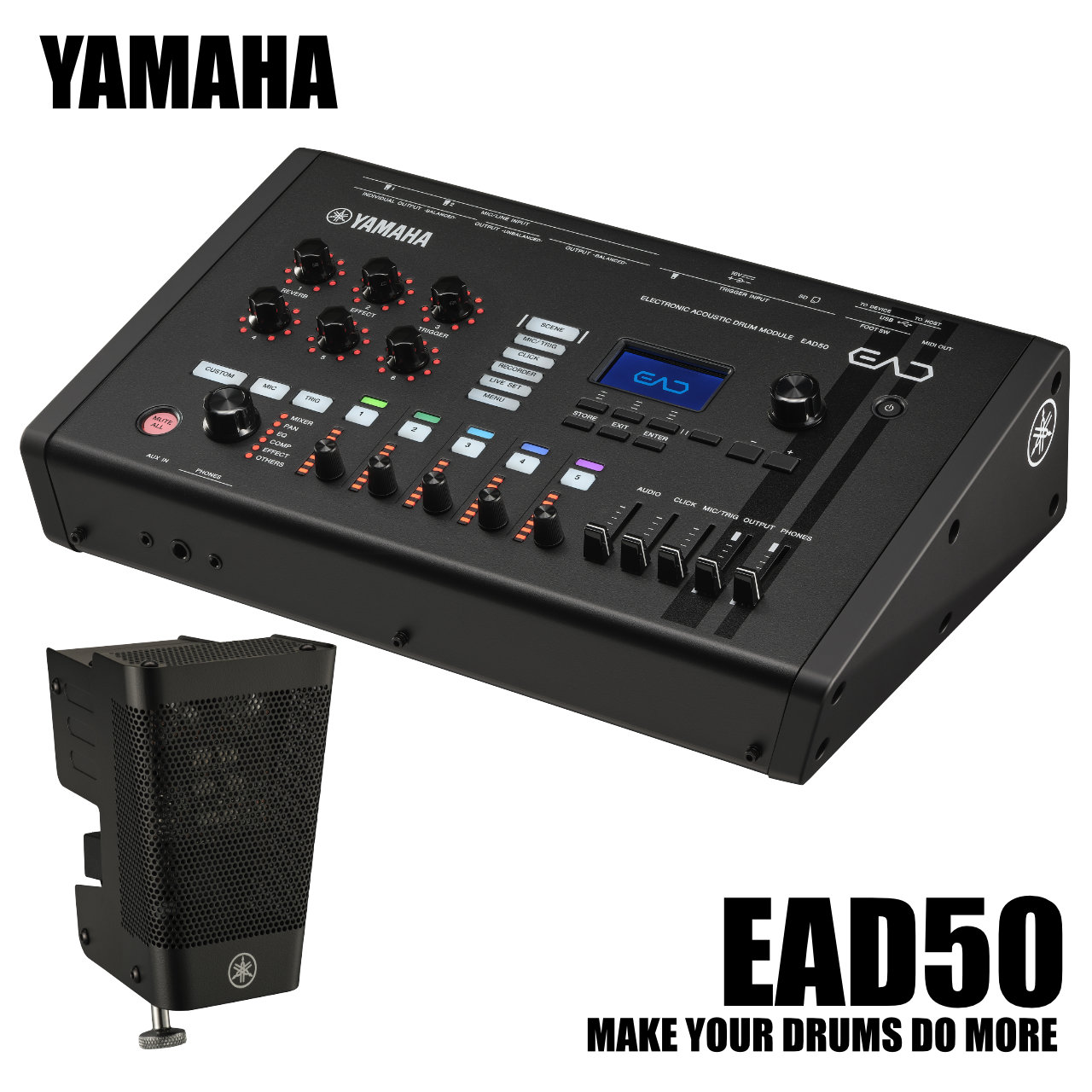 EAD(Electronic Acoustic Drum module)は、専用のセンサー・ユニットを取り付けるだけでドラム全体をステレオ収音し、エフェクトや音源を組み合わせた表現が手軽に行える、ヤマハ独自の製品です。