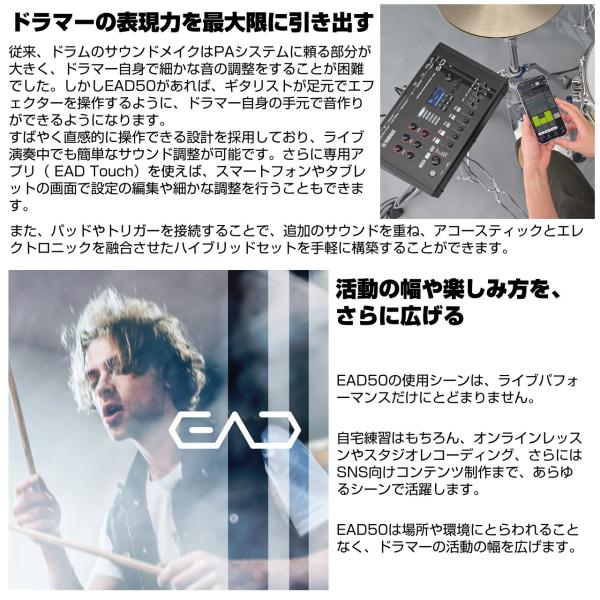 EAD50は、あらゆるドラマーに新しい演奏スタイルを提供し、表現の幅を広げます。