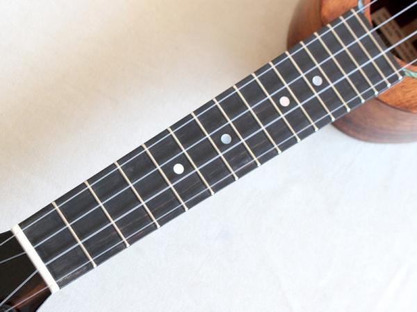 ボディエンドは大きく、サウンドホールをネック寄りに設置することでブリッジ周りで響く部分を大きく確保できソプラニーノサイズながらソプラノサイズを同等の鳴りを実現しています。