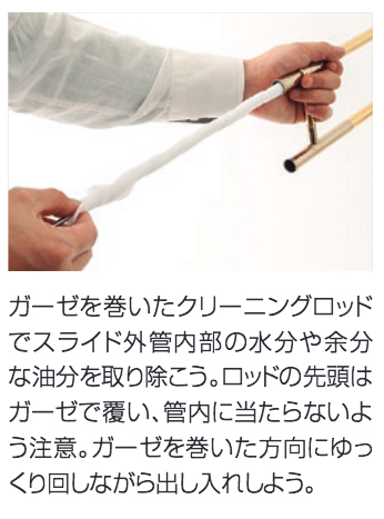 ■ヤマハ クリーニングロッド スライド...これにガーゼなどを巻き付けスライド内部をお掃除します。綺麗にお掃除することでスライドの動きがスムーズになります。