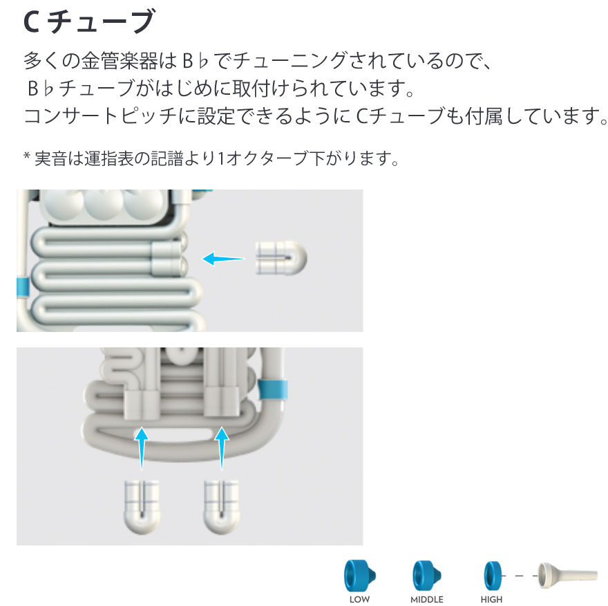 小学校の教室ではプレバンドの楽器として、また大人のプレイヤー向けの楽しい練習用楽器としても使用できますので、あらゆる年齢やレベルに適した革命的な金管楽器といえます。