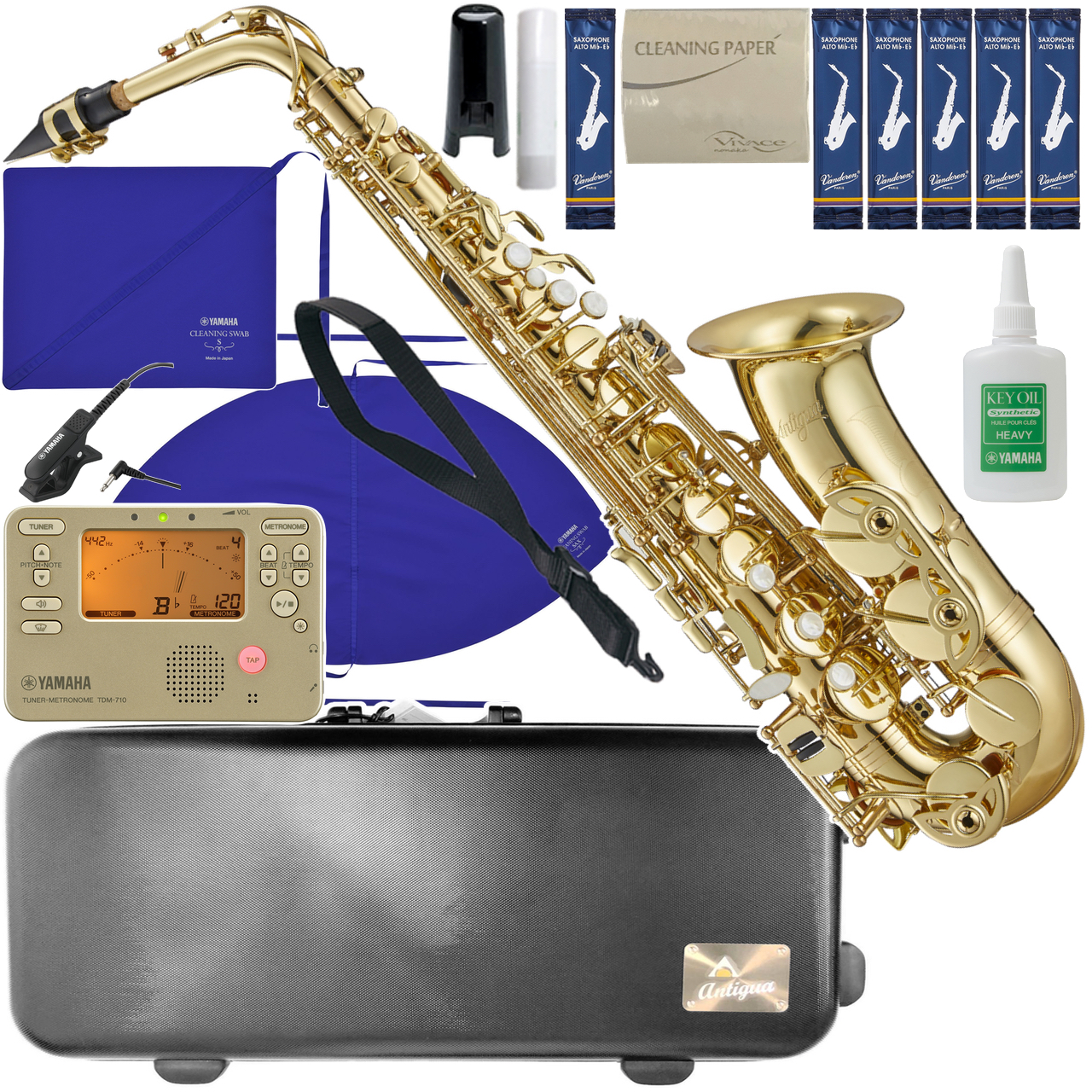 セット内容■サックス 本体■ハードケース ■オリジナルマウスピース ■オリジナルリガチャー ■オリジナルマウスピースキャップ ■ネックストラップ ■コルクグリス...コルク部分に使用。抜き差しがスムーズに。 ■クリーニングペーパー...演奏後にタンポの水分を取るためのお手入れ用品。 ■Vandorenリード (バンドレン)...1枚