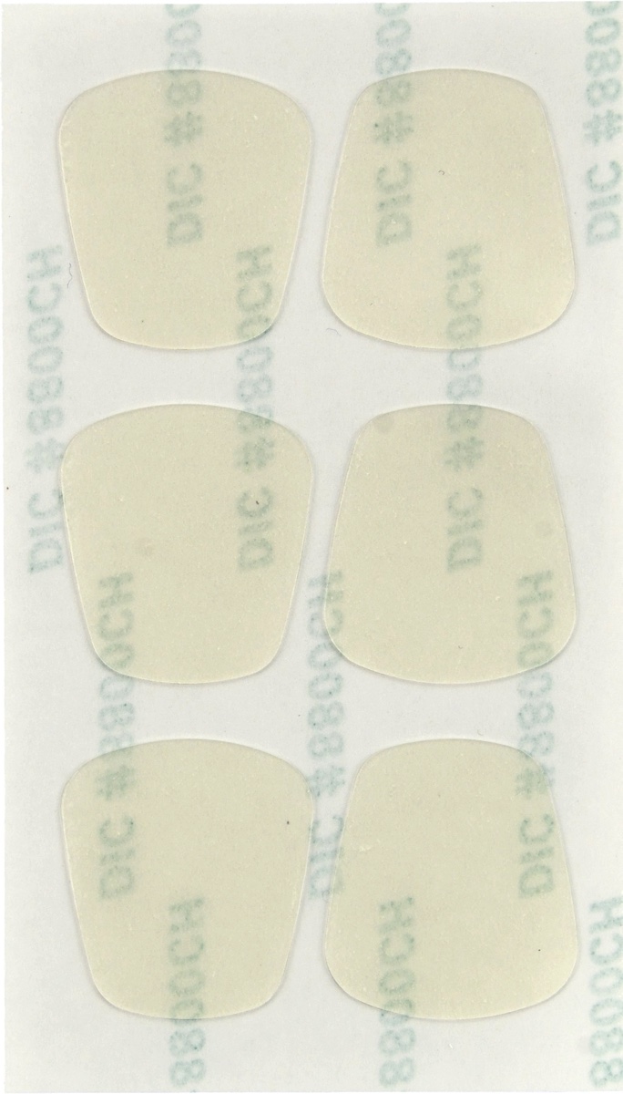 単純にサイズが違うだけなので、違うサイズのものを使用すればマウスピースによってははみ出てしまうこともあります。その場合は所定の位置より少し下げ目に貼ったり、余分な部分を切って使うこともできます。