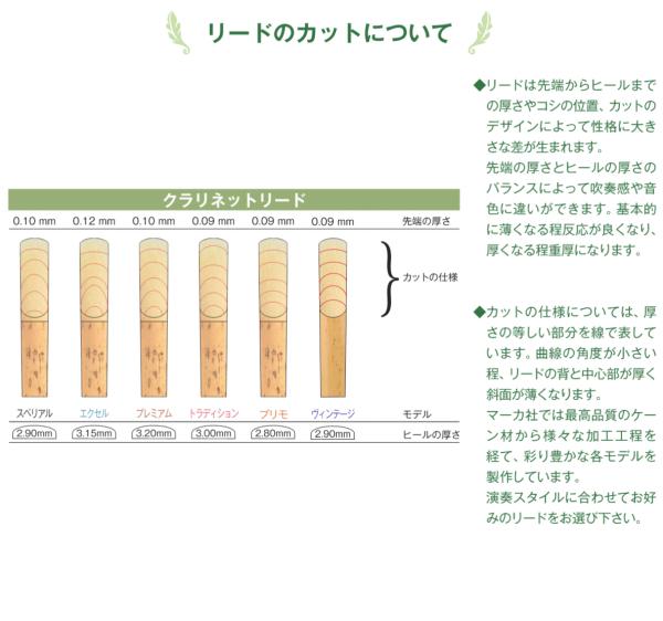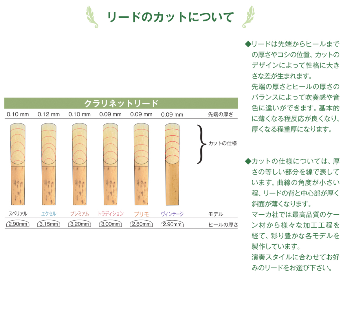 マーカ社創業時から伝わる製法を用いて、一枚一枚丁寧に作り続けられているリードです。伝統的なフレンチサウンドの表現に特にマッチします。