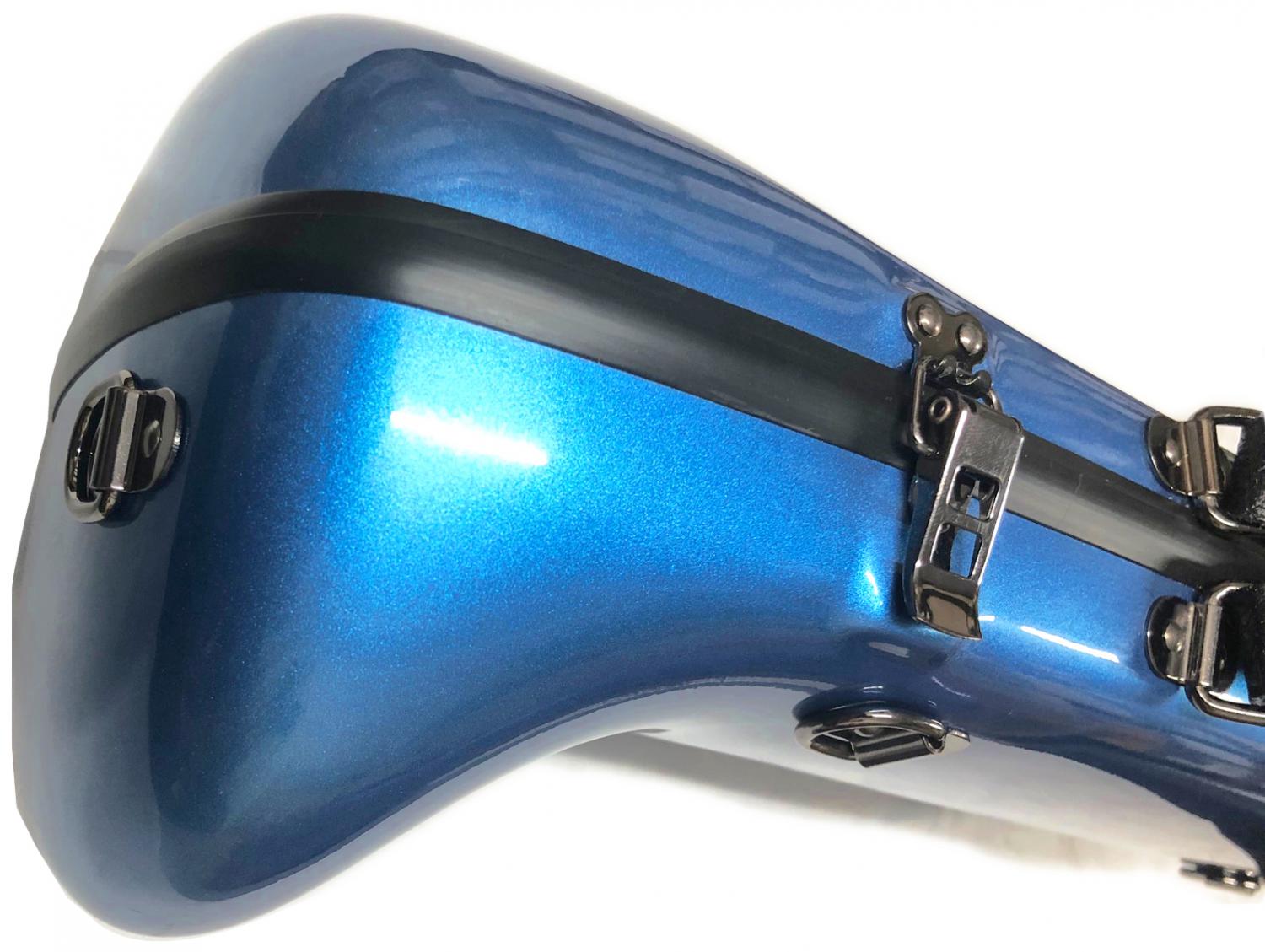スマートなデザインのエアロタイプ。グラスファイバーケースの中ではかなりコンパクトな類です。機能面を重視し小物入、マウスピースを入れることができるスペースがあります。