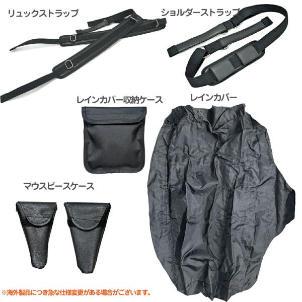 トリプルケース...Bb管、A管、Eb管を各1本収納可能。リュックにすることが可能