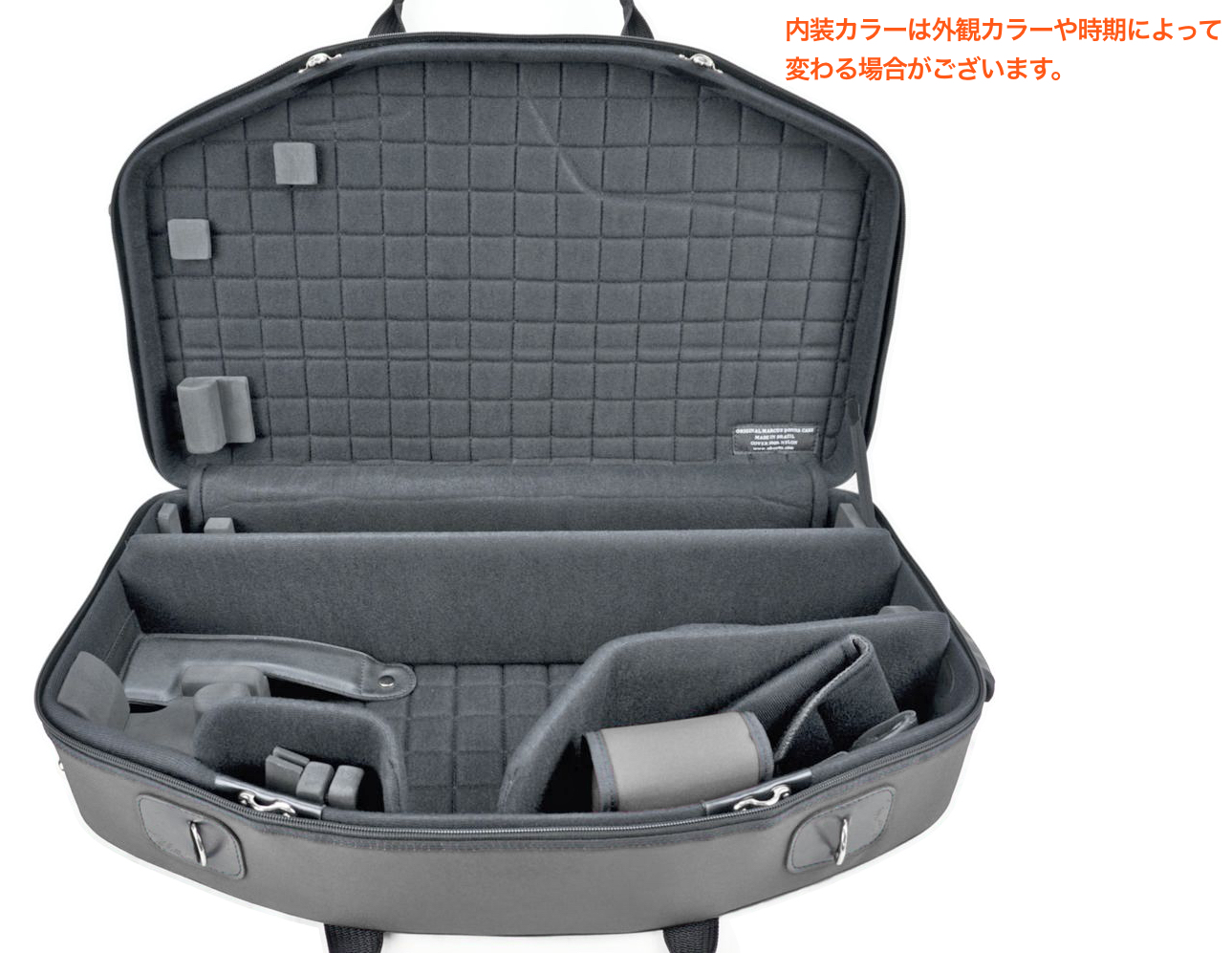 プロとして活躍される多くの管楽器奏者の方々にもご愛用が多い、ケースとしてはちょっと高めの高級ケースですね。ファイバー製セミハードケースで、その頑丈さと品質の高さに定評があります。楽器の為に研究された緩衝材で管体や細かな部分の凹み・曲がりを防ぎます。