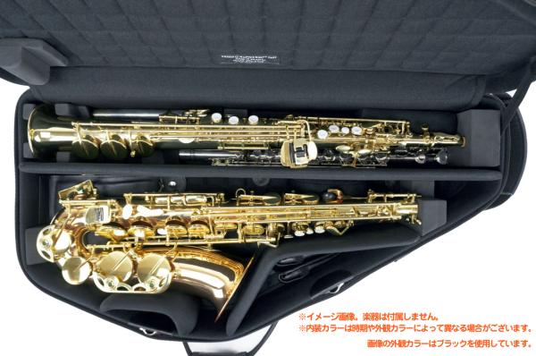 MBSSASND...セミハードケース。ソプラノサックス(ネック一体式 ストレートネック) 1本とアルトサックス 1本を収納できるダブルケース。