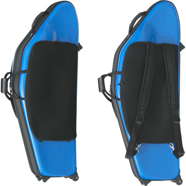 また、キャスターとリュックストラップでの持ち運びが可能で、重量のあるバリトンサックスの運搬でも奏者の負担を劇的に軽減します。