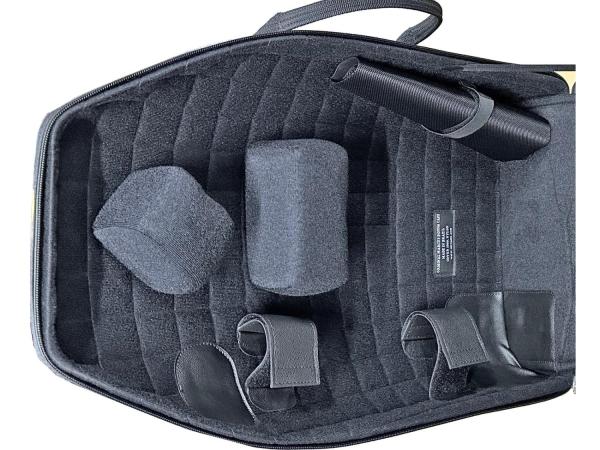デタッチャブルベルホルン用のケース。プロとして活躍される多くの管楽器奏者の方々にもご愛用が多い、ケースとしてはちょっと高めの高級ケースですね。ファイバー製セミハードケースで、その頑丈さと品質の高さに定評があります。楽器の為に研究された緩衝材で管体や細かな部分の凹み・曲がりを防ぎます。クッションを適切に配置することで楽器をしっかりと固定させて収納することができます。MBの中でもホルン用は売れ筋商品で、中でもこちらのモデルは人気が高い仕様です。
