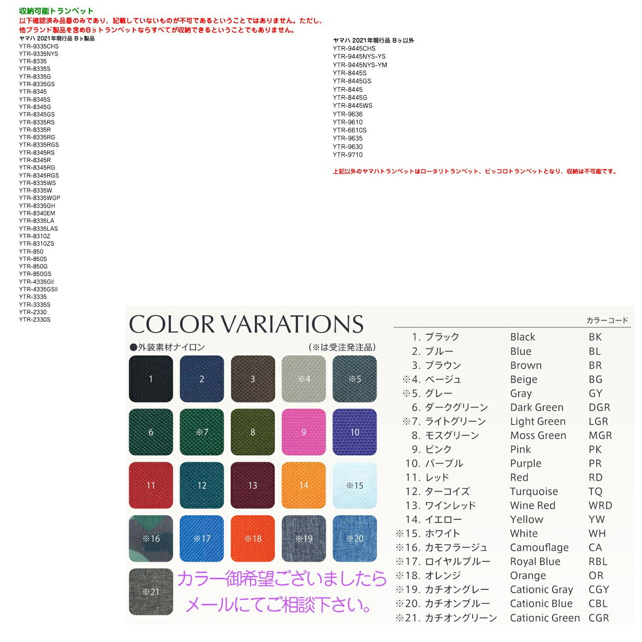 以下確認済み品番のみであり、記載していないものが不可であるということではありません。ただし、他ブランド製品を含めB♭トランペットならすべてが収納できるということでもありません。