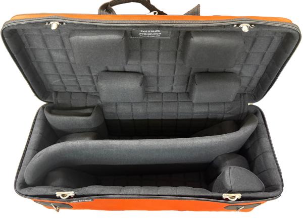 プロとして活躍される多くの管楽器奏者の方々にもご愛用が多い、MBケースはケースとしてはちょっと高めの高級ケースですね。ファイバー製セミハードケースで、その頑丈さと品質の高さに定評があります。楽器の為に研究された緩衝材で管体や細かな部分の凹み・曲がりを防ぎます。クッションを適切に配置することで楽器をしっかりと固定させて収納することができます。