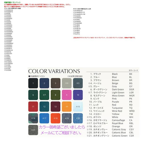 上記以外のヤマハトランペットはロータリトランペット、ピッコロトランペットとなり、収納は不可能です。