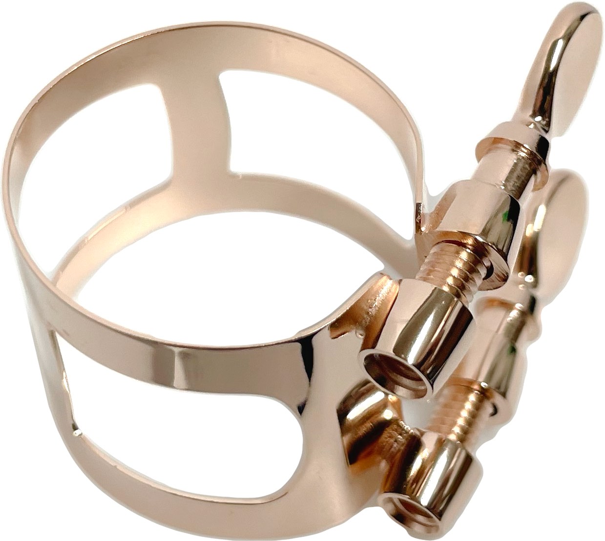 こちらはヤマハの銀メッキのリガチャーを国内メッキ加工会社でピンクゴールドに加工した特注品です。